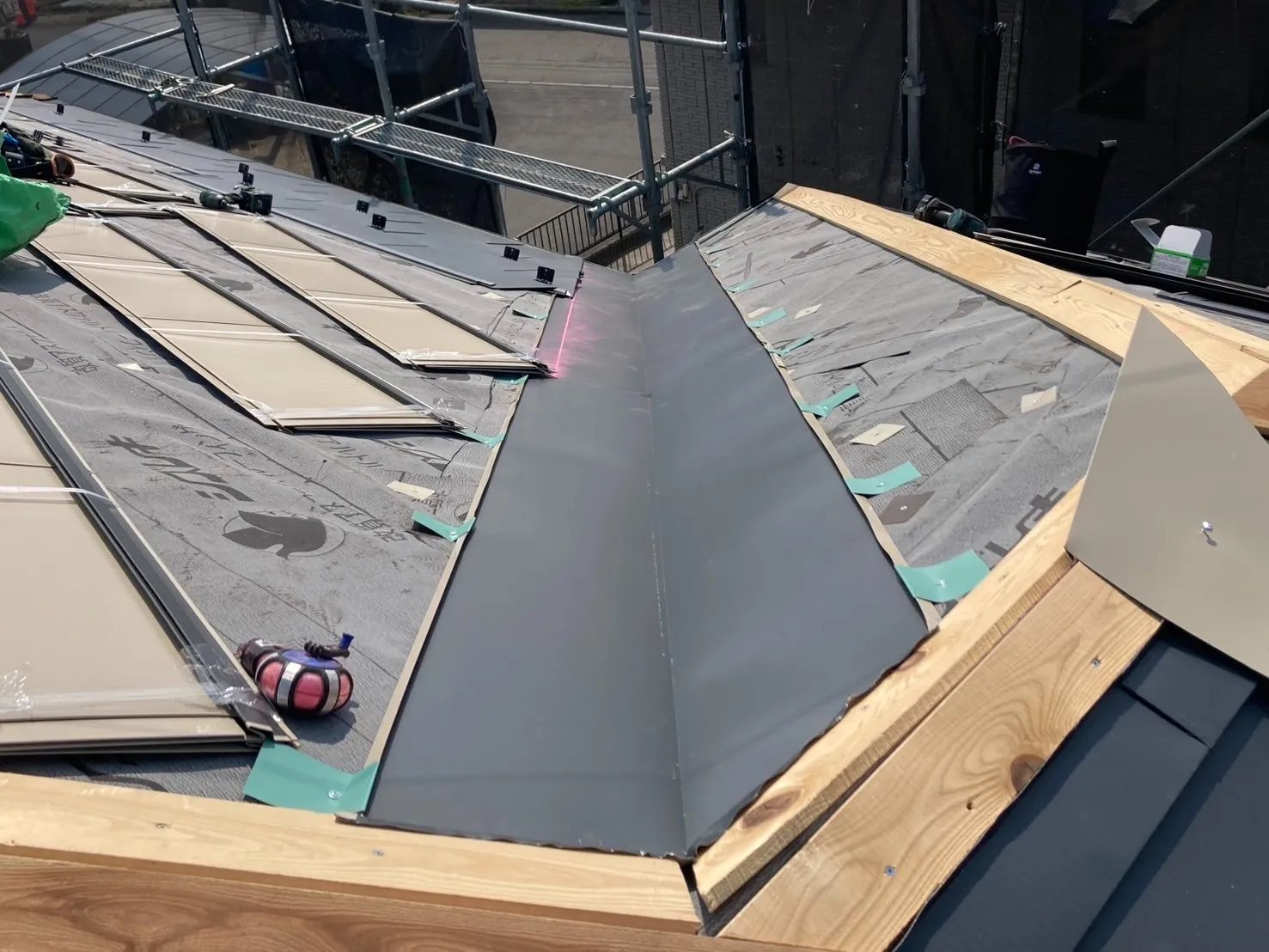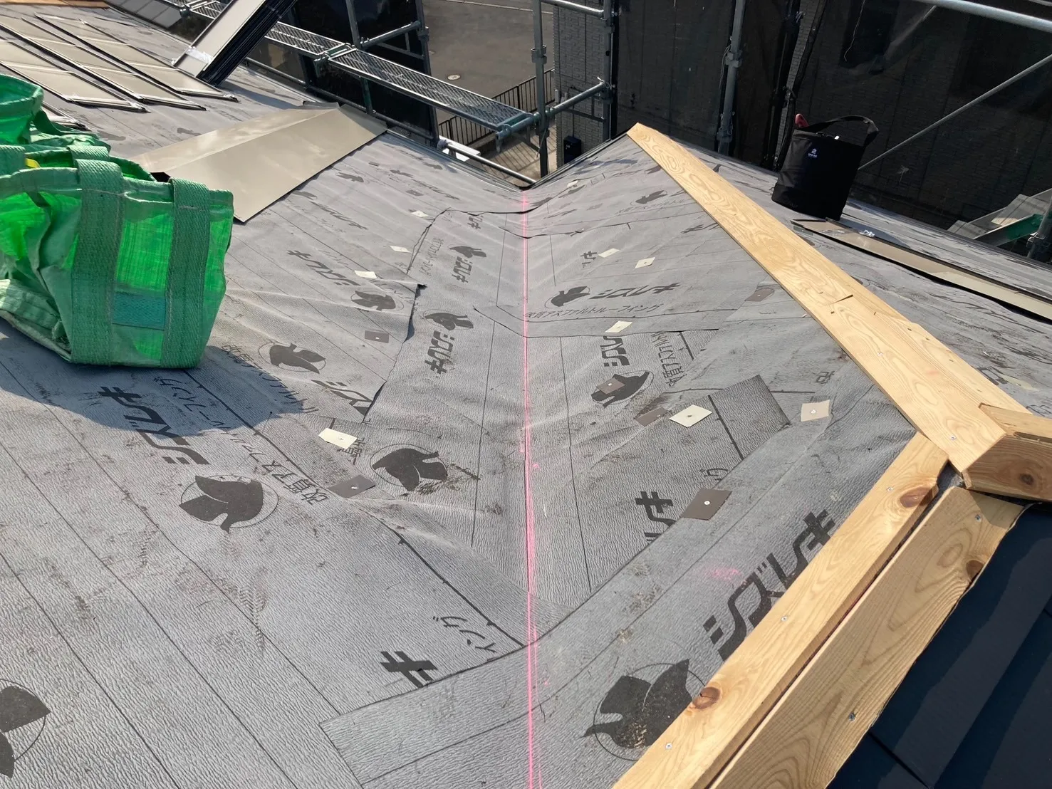 ルーフィング貼り付け